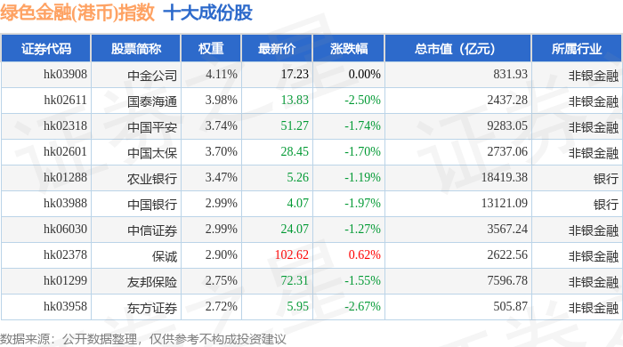 绿色金融(港币)(980053)指数十大成份股详情如下: