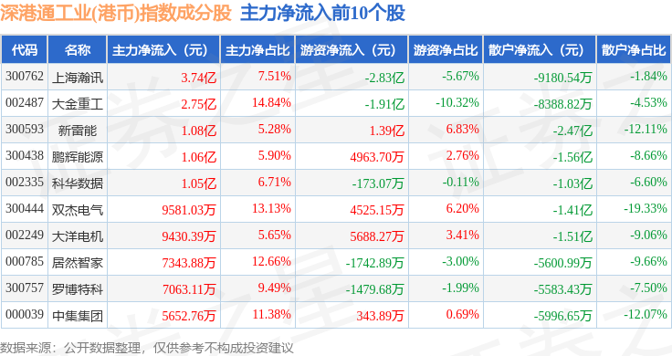 资金流向方面,深港通工业(港币)(983018)指数成份股当日主力资金净流出合计89.38亿元,游资资金净流入合计14.3亿元,散户资金净流入合计75.07亿元。成份股资金流向详情见下表: