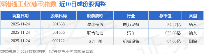近10日内深港通工业(港币)(983018)指数成份股做了调整,新纳入了2只股票,剔除了1只股票。