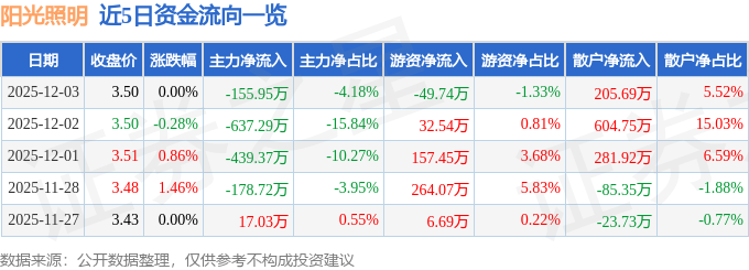12月3日的资金流向数据方面,主力资金净流出155.95万元,占总成交额4.18%,游资资金净流出49.74万元,占总成交额1.33%,散户资金净流入205.69万元,占总成交额5.52%。