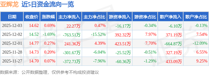12月3日的资金流向数据方面,主力资金净流入22.27万元,占总成交额0.47%,游资资金净流出16.17万元,占总成交额0.34%,散户资金净流出6.1万元,占总成交额0.13%。