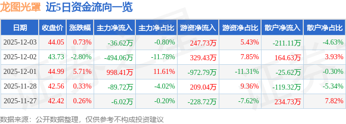 证券之星消息,截至2025年12月3日收盘,龙图光罩(688721)报收于44.05元,上涨0.73%,换手率2.9%,成交量1.03万手,成交额4563.22万元。