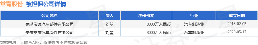 常青股份12月2日披露2笔对外担保,被担保公司2家。对外担保明细如下表: