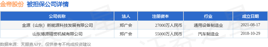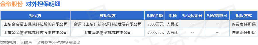 金帝股份12月2日披露2笔对外担保,被担保公司2家。对外担保明细如下表: