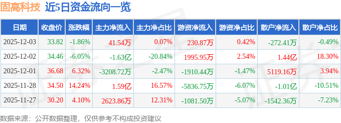 证券之星消息,截至2025年12月3日收盘,固高科技(301510)报收于33.82元,下跌1.86%,换手率5.8%,成交量16.19万手,成交额5.55亿元。