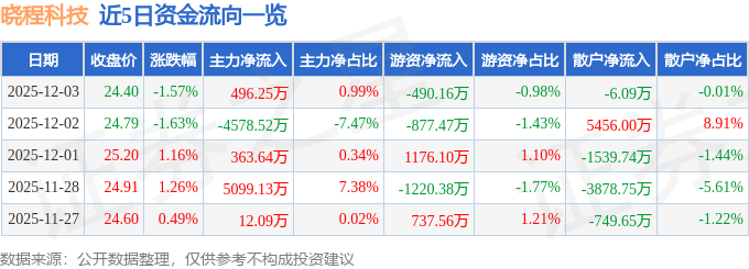 证券之星消息,截至2025年12月3日收盘,晓程科技(300139)报收于24.4元,下跌1.57%,换手率8.7%,成交量20.34万手,成交额5.0亿元。