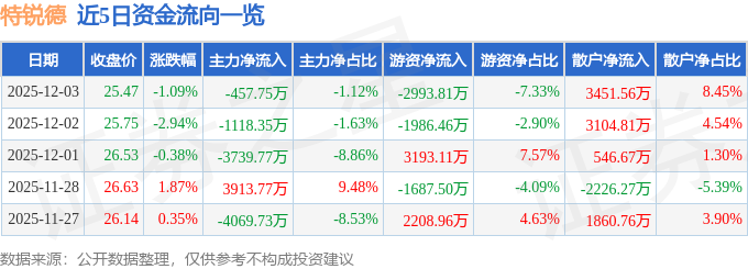 12月3日的资金流向数据方面,主力资金净流出457.75万元,占总成交额1.12%,游资资金净流出2993.81万元,占总成交额7.33%,散户资金净流入3451.56万元,占总成交额8.45%。