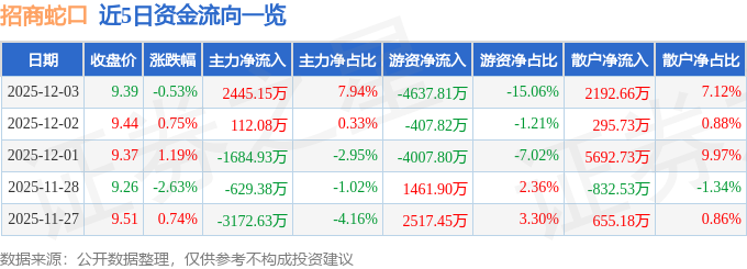 证券之星消息,截至2025年12月3日收盘,招商蛇口(001979)报收于9.39元,下跌0.53%,换手率0.39%,成交量32.62万手,成交额3.08亿元。