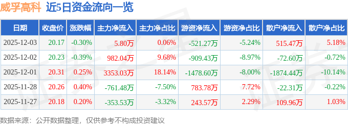 证券之星消息,截至2025年12月3日收盘,威孚高科(000581)报收于20.17元,下跌0.3%,换手率0.62%,成交量4.93万手,成交额9952.26万元。