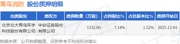 证券之星消息,青鸟消防(002960)12月4日公开信息显示,股东北京北大青鸟环宇科技股份有限公司向华安证券股份有限公司合计质押1332.0万股,占总股本1.52%。质押详情见下表: