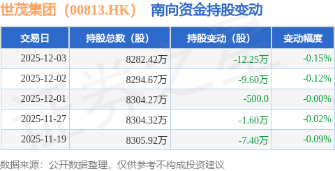 证券之星消息,12月3日南向资金减持12.25万股世茂集团(00813.HK)。近5个交易日中,获南向资金减持的有5天,累计净减持30.9万股。近20个交易日中,获南向资金减持的有20天,累计净减持70.4万股。截至目前,南向资金持有世茂集团(00813.HK)8282.42万股,占公司已发行普通股的0.95%。