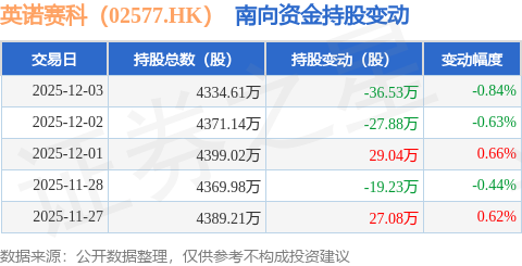 证券之星消息,12月3日南向资金减持36.53万股英诺赛科(02577.HK)。近5个交易日中,获南向资金减持的有3天,累计净减持27.52万股。近20个交易日中,获南向资金减持的有12天,累计净减持40.29万股。截至目前,南向资金持有英诺赛科(02577.HK)4334.61万股,占公司已发行普通股的8.24%。