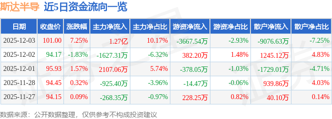 12月3日的资金流向数据方面,主力资金净流入1.27亿元,占总成交额10.17%,游资资金净流出3667.54万元,占总成交额2.93%,散户资金净流出9076.63万元,占总成交额7.25%。