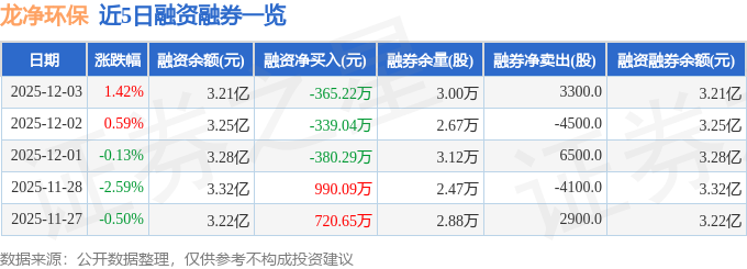证券之星消息,截至2025年12月3日收盘,龙净环保(600388)报收于15.69元,上涨1.42%,换手率0.77%,成交量9.79万手,成交额1.54亿元。