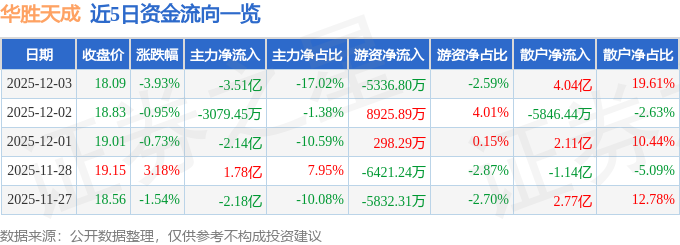证券之星消息,截至2025年12月3日收盘,华胜天成(600410)报收于18.09元,下跌3.93%,换手率10.27%,成交量112.56万手,成交额20.6亿元。