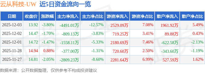 12月3日的资金流向数据方面,主力资金净流出4491.01万元,占总成交额12.57%,游资资金净流入2529.09万元,占总成交额7.08%,散户资金净流入1961.92万元,占总成交额5.49%。