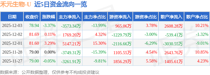 证券之星消息,截至2025年12月3日收盘,禾元生物(688765)报收于78.94元,下跌3.37%,换手率7.8%,成交量3.2万手,成交额2.55亿元。