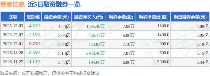 赛意信息融资融券信息显示,融资方面,当日融资买入3402.81万元,融资偿还4988.21万元,融资净偿还1585.4万元。融券方面,融券卖出1300.0股,融券偿还0.0股,融券余量7.09万股,融券余额153.92万元。融资融券余额4.89亿元。