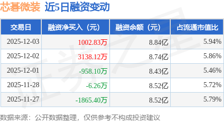 证券之星消息,12月3日,芯碁微装(688630)融资买入4906.5万元,融资偿还3903.67万元,融资净买入1002.83万元,融资余额8.84亿元。