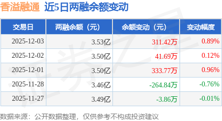 证券之星消息,12月3日,香溢融通(600830)融资买入998.25万元,融资偿还686.83万元,融资净买入311.42万元,融资余额3.53亿元,近3个交易日已连续净买入累计686.89万元。