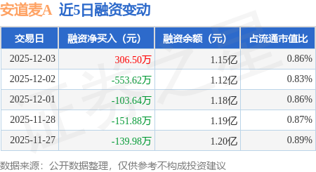 证券之星消息,12月3日,安道麦A(000553)融资买入1231.96万元,融资偿还925.46万元,融资净买入306.5万元,融资余额1.15亿元。