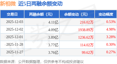 证券之星消息,12月3日,新相微(688593)融资买入1456.47万元,融资偿还1240.44万元,融资净买入216.03万元,融资余额4.11亿元,近3个交易日已连续净买入累计3391.99万元。