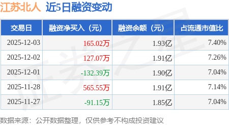 证券之星消息,12月3日,江苏北人(688218)融资买入552.36万元,融资偿还387.33万元,融资净买入165.02万元,融资余额1.93亿元。