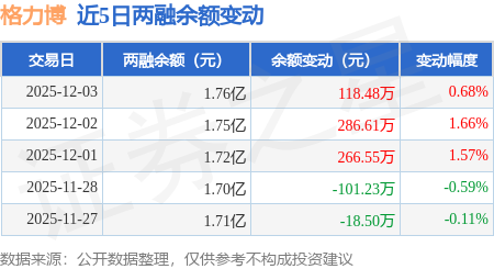 证券之星消息,12月3日,格力博(301260)融资买入588.61万元,融资偿还469.99万元,融资净买入118.62万元,融资余额1.76亿元,近3个交易日已连续净买入累计671.63万元。