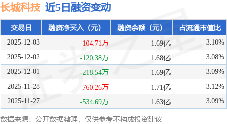 证券之星消息,12月3日,长城科技(603897)融资买入580.36万元,融资偿还475.66万元,融资净买入104.71万元,融资余额1.69亿元,近20个交易日中有11个交易日出现融资净买入。