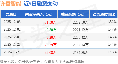 证券之星消息,12月3日,许昌智能(920496)融资买入144.14万元,融资偿还112.77万元,融资净买入31.38万元,融资余额2252.5万元。
