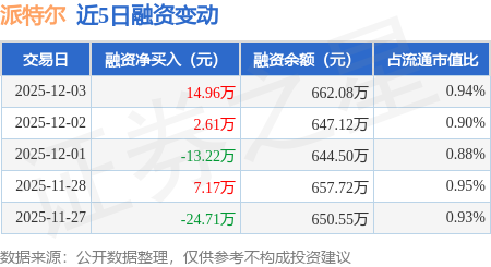 证券之星消息,12月3日,派特尔(920871)融资买入38.44万元,融资偿还23.47万元,融资净买入14.96万元,融资余额662.08万元,近20个交易日中有13个交易日出现融资净买入。