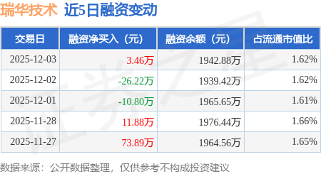 证券之星消息,12月3日,瑞华技术(920099)融资买入26.48万元,融资偿还23.02万元,融资净买入3.46万元,融资余额1942.88万元,近20个交易日中有11个交易日出现融资净买入。