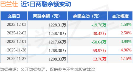 证券之星消息,12月3日,巴兰仕(920112)融资买入1.06万元,融资偿还20.84万元,融资净卖出19.78万元,融资余额1228.31万元。