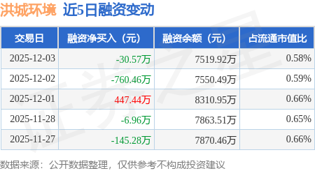 证券之星消息,12月3日,洪城环境(600461)融资买入639.1万元,融资偿还669.67万元,融资净卖出30.57万元,融资余额7519.92万元。