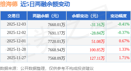 证券之星消息,12月3日,维海德(301318)融资买入190.57万元,融资偿还221.73万元,融资净卖出31.16万元,融资余额7660.01万元。