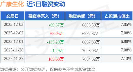 证券之星消息,12月3日,广康生化(300804)融资买入97.29万元,融资偿还166.66万元,融资净卖出69.37万元,融资余额6863.5万元。