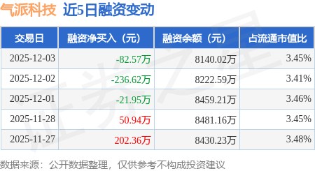 证券之星消息,12月3日,气派科技(688216)融资买入208.81万元,融资偿还291.37万元,融资净卖出82.57万元,融资余额8140.02万元。