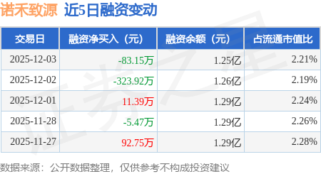 证券之星消息,12月3日,诺禾致源(688315)融资买入494.12万元,融资偿还577.27万元,融资净卖出83.15万元,融资余额1.25亿元。