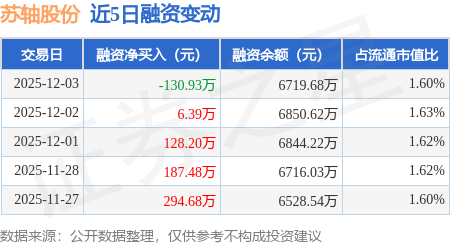 证券之星消息,12月3日,苏轴股份(920418)融资买入49.64万元,融资偿还180.58万元,融资净卖出130.93万元,融资余额6719.68万元。