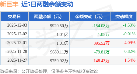 证券之星消息,12月3日,新巨丰(301296)融资买入163.95万元,融资偿还318.03万元,融资净卖出154.08万元,融资余额9920.5万元。