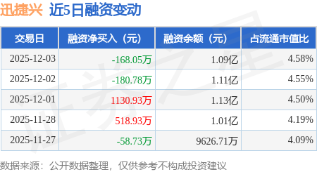证券之星消息,12月3日,迅捷兴(688655)融资买入308.35万元,融资偿还476.39万元,融资净卖出168.05万元,融资余额1.09亿元。