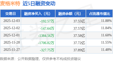 证券之星消息,12月3日,麦格米特(002851)融资买入1.04亿元,融资偿还1.06亿元,融资净卖出192.57万元,融资余额37.55亿元。
