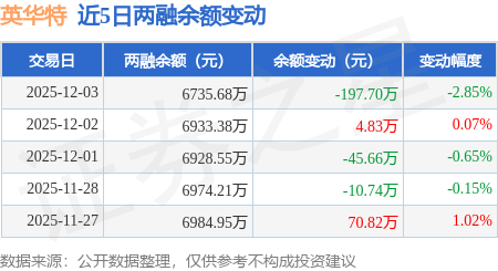 证券之星消息,12月3日,英华特(301272)融资买入236.34万元,融资偿还434.04万元,融资净卖出197.7万元,融资余额6735.68万元,近20个交易日中有12个交易日出现融资净买入。