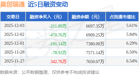 证券之星消息,12月3日,昊创瑞通(301668)融资买入561.2万元,融资偿还773.09万元,融资净卖出211.89万元,融资余额6697.35万元。