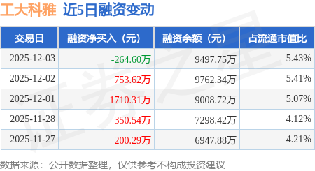 证券之星消息,12月3日,工大科雅(301197)融资买入600.65万元,融资偿还865.25万元,融资净卖出264.6万元,融资余额9497.75万元,近20个交易日中有13个交易日出现融资净买入。