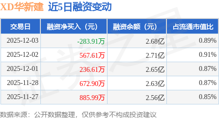 证券之星消息,12月3日,XD华新建(600801)融资买入825.49万元,融资偿还1109.4万元,融资净卖出283.91万元,融资余额2.68亿元。