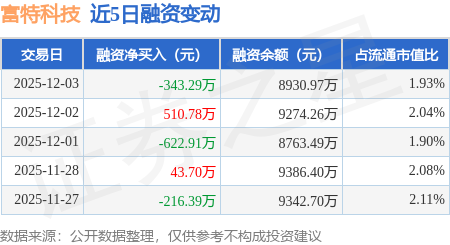 证券之星消息,12月3日,富特科技(301607)融资买入398.61万元,融资偿还741.9万元,融资净卖出343.29万元,融资余额8930.97万元。