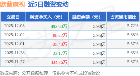 证券之星消息,12月3日,欧普康视(300595)融资买入1285.36万元,融资偿还1777.95万元,融资净卖出492.6万元,融资余额5.9亿元。
