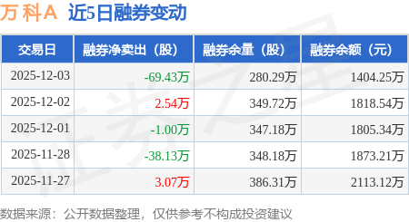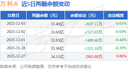 证券之星消息,12月3日,万 科A(000002)融资买入1.47亿元,融资偿还1.63亿元,融资净卖出1622.82万元,融资余额33.26亿元。