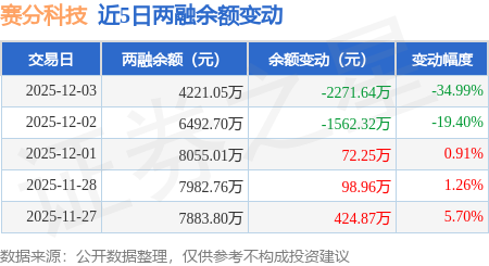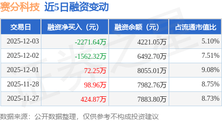 证券之星消息,12月3日,赛分科技(688758)融资买入527.54万元,融资偿还2799.19万元,融资净卖出2271.64万元,融资余额4221.05万元。